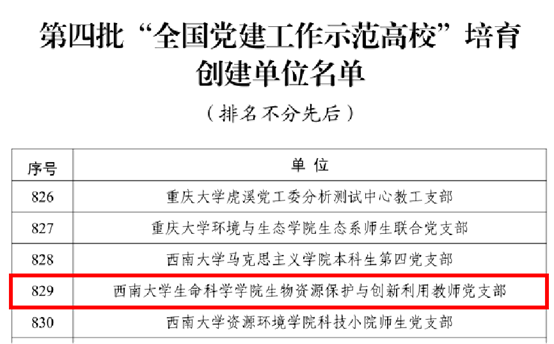 近日,教育部公布第四批全国党建工作示范高校、标杆院系、样板支部培育创建单位名单,共遴选产生了10个全国党建工作示范高校、100个全国党建工作标杆院系、1001个全国党建工作样板支部培育创建单位。其中,365英国上市集团生物资源保护与创新利用教师党支部入选第四批全国党建工作样板支部。