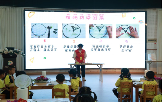 在幼儿园活动室,员工党员带领小朋友们体验“非遗拓染”手工制作。员工党员在与小朋友轻松的互动中实现生命科学知识的转化传播,孩子们不仅感受到色彩与形态之美,也初步认识到植物多样性与人类生活的联系。
