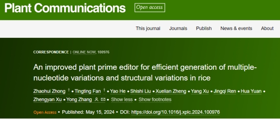 植物基因组中的单碱基变异(single-nucleotide variations,SNVs)、多碱基变异(multiple nucleotide variations,MNVs)和结构变异(structural variations ,SVs)对于基因功能研究和生物学性状提升有着起着重要作用。但现有基因组编辑方法受制于编辑精度有限、编辑事件非定向等因素,难以实现上述变异材料的有效定向获得。2019年,David Liu课题组开发的引导编辑器(prime editor, PE)经多次迭代升级,目前在哺乳动物细胞中已实现任意碱基替换编辑及插入删除等结构变异的有效创制,然而植物中引导编辑效率仍然较低,限制了SNVs,MNVs和SVs在重要农作物基因组中的有效获得。