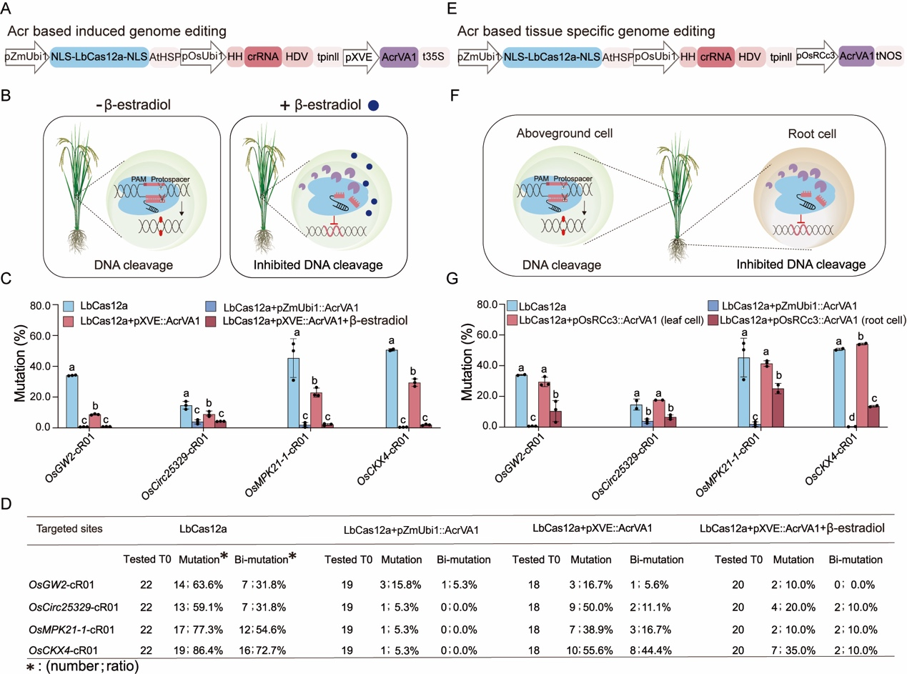 5、 AcrVA1的诱导和组织特异性表达对水稻LbCas12a基因组编辑实现时空调控