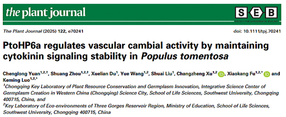 2025年5月30日,365英国上市集团罗克明研究组在Plant Journal发表了题为“PtoHP6a regulates vascular cambial activity by maintaining cytokinin signaling stability inPopulus tomentosa”的研究论文。该研究揭示了在木材发育过程中PtoHP6基因对于维持次生韧皮部细胞分裂素信号稳定及正常维管形成层活性具有重要的生物学意义。