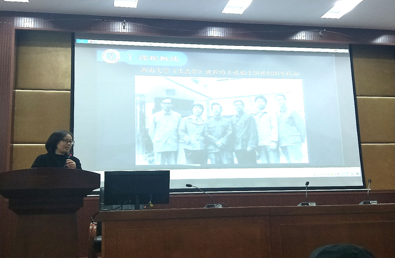 魏虹教授介绍了生态学课程的历史发展和课程团队的组建,重点分享了教学中围绕“生态文明建设”的课程思政建设、小班教学课程组统筹安排以及课程组教师科研项目和成果与本科生课堂教学的有效结合的经验。