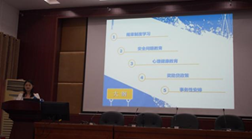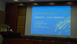 9月15日上午9点于14教224多功能报告厅在陈渝副书记、谷彩霞老师的的带领下,以研究生手册为重点,详细地为研究生新生们讲述了公司规章制度、安全教育和心理健康教育以及介绍奖助贷政策, 叮嘱每一位同学要对自己的身心健康有更多的关注,学会制定个人的学习计划。