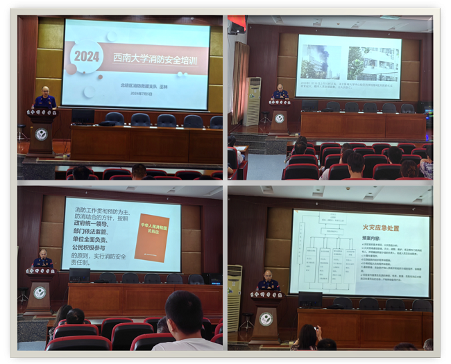为进一步强化公司师生消防安全意识,提高师生自防自救能力,公司于7月5日组织开展消防安全主题教育活动。此次活动特别邀请到重庆市北碚区消防救援局专业技术十级工程师巫林、所辖城北消防救援站政治指导员曹怀锋等消防指战员对公司师生进行消防安全培训。