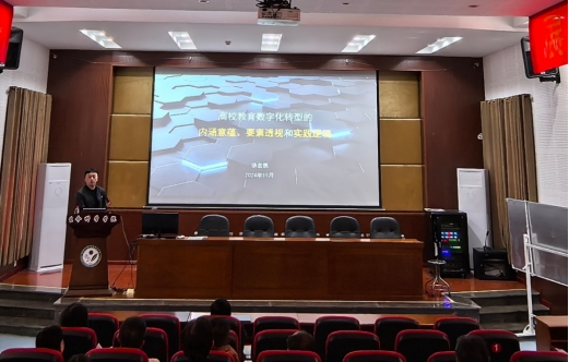 11月1日上午,应公司邀请,公司教务处徐宏凯科长来公司作了题为“高校教育数字化转型的内涵意蕴、要素透视和实践逻辑”的报告。报告由公司副经理陶文静教授主持,公司领导、全体教师近100人参加了此次讲座。