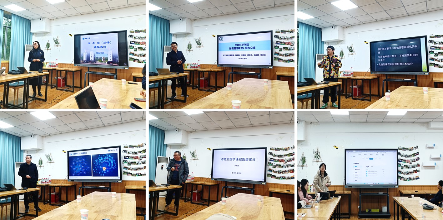 各核心课程团队逐一就本课程数字化建设情况进行了演示和汇报,各自侧重点不尽相同,既有线上课程、知识图谱的建设,也有虚拟实验、平台使用的数据展示,更有对数字化教学未来发展的看法和问题提出。老师们普遍认为,生物科学专业课程知识图谱建设的建设对于学习者的学习意义非凡,但是建设中存在知识点多、内容更新快、资源分类和关联工作量大这样的难点,这些工作的完成,需要教师之间的通力配合才能高质量完成。之后,老师们就课程数字化建设过程中发现的各种问题和在座同行及超星技术人员进行了充分的交流。
