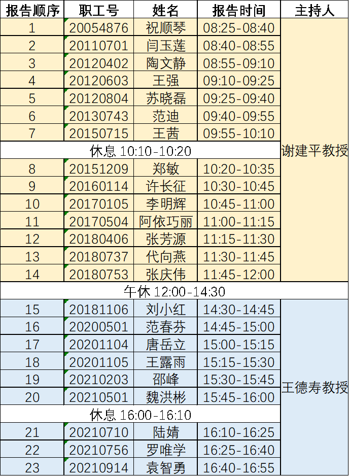 报告顺序及时间:报告顺序见附件;报告时间为10分钟,回答专家问题5分钟。